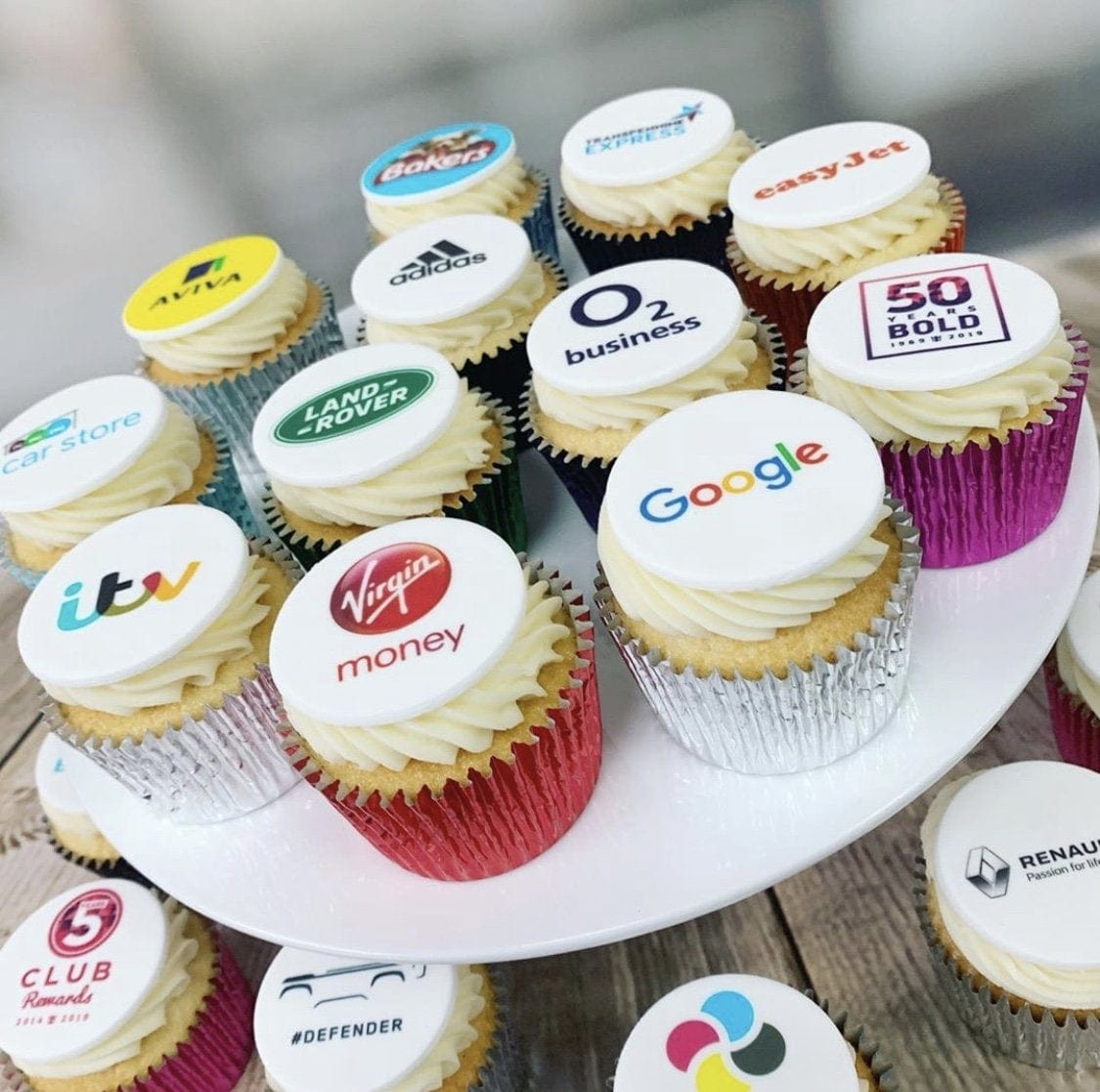 Branded Buttercream Cupcakes . It's quick and easy to create your corporate branded cupcakes! Just follow the 5 simple steps below, or contact us to order by email or phone. If you want only want to add one design try our Corporate Logo Cupcakes | One Design.Order Cupcakes in Dubai, Birthday Cupcakes in Dubai, Cake shop in Dubai, Same Day delivery.