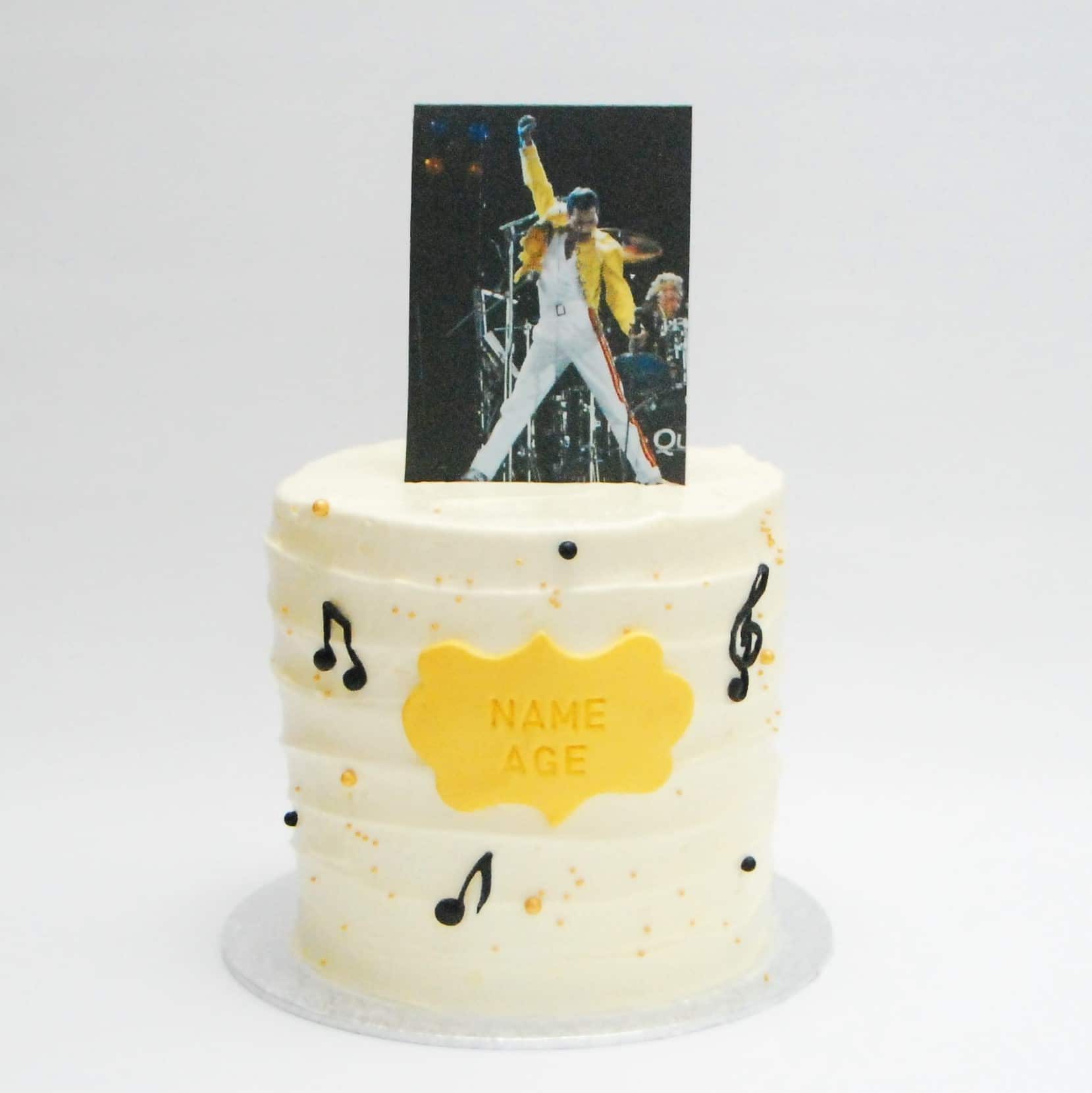 这款音乐蛋糕是我们豪华主题蛋糕系列中的一款设计。 您可以自由选择艺术家、乐器或其他与音乐相关的符号/图标。 这项选择决定了蛋糕顶部的装饰:我们将使用您输入的主题来选择一张图片,并将其打印在可食用纸上。 因此,蛋糕装饰物完全可以食用,包括纸张和墨水,并且是 2D 立体装饰物。